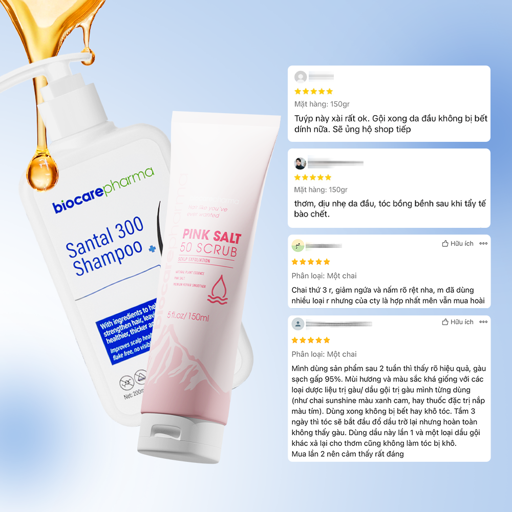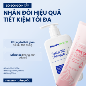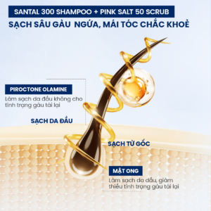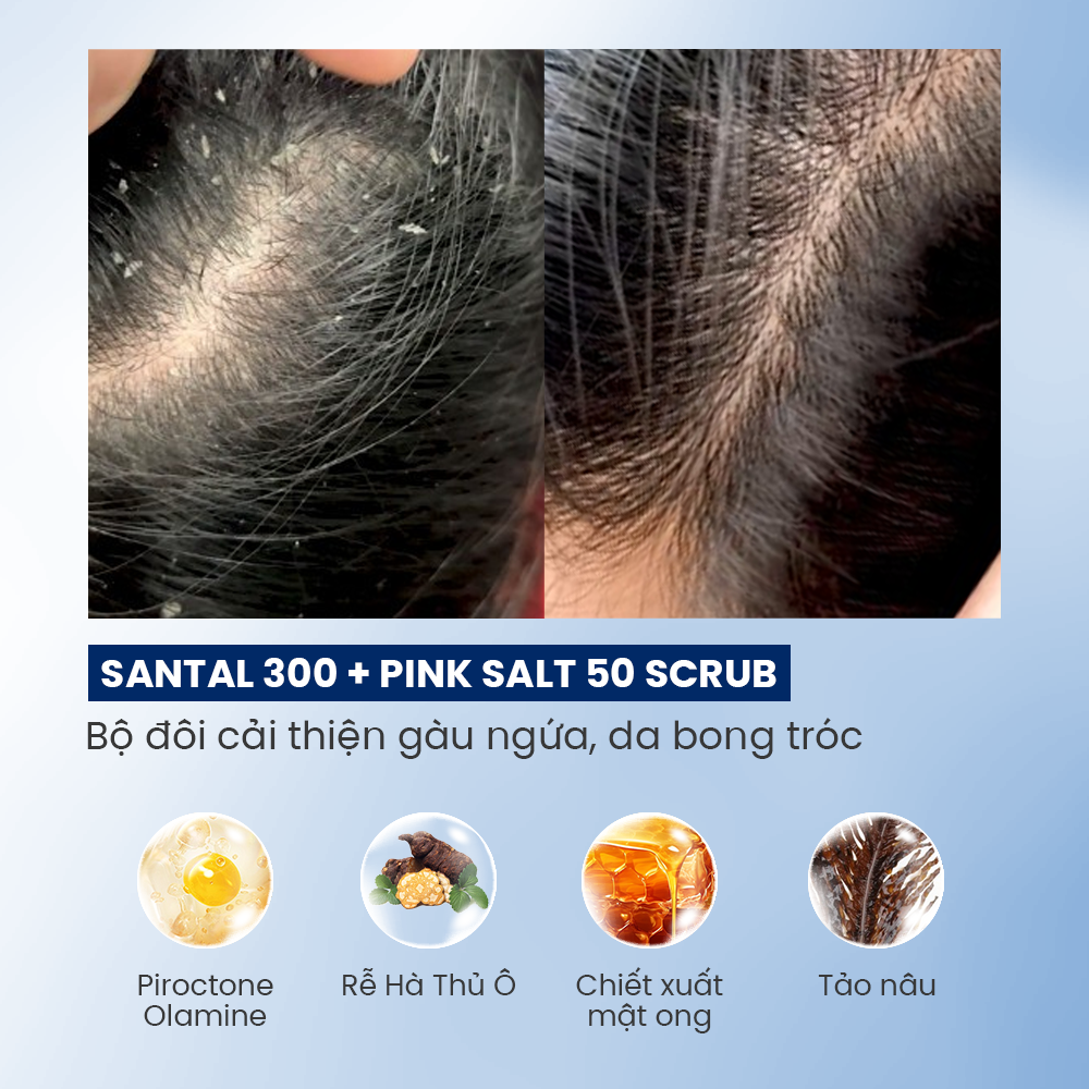 COMBO TẨY TẾ BÀO CHẾT + DẦU GỘI SANTAL 300 SHAMPOO – SẠCH GÀU NGỨA, SẠCH SÂU NANG TÓC, Kiềm Dầu và Giúp Chân Tóc Tơi Phồng