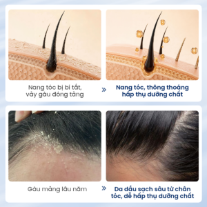 - Da đầu thông thoáng giúp hấp thụ được nhiều dưỡng chất, phát huy tối đa công dụng, rút ngắn thời gian làm sạch gàu đáng kể.