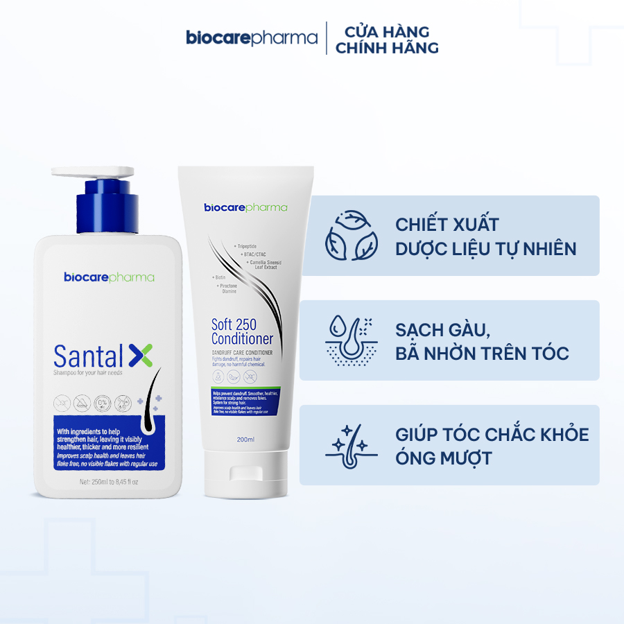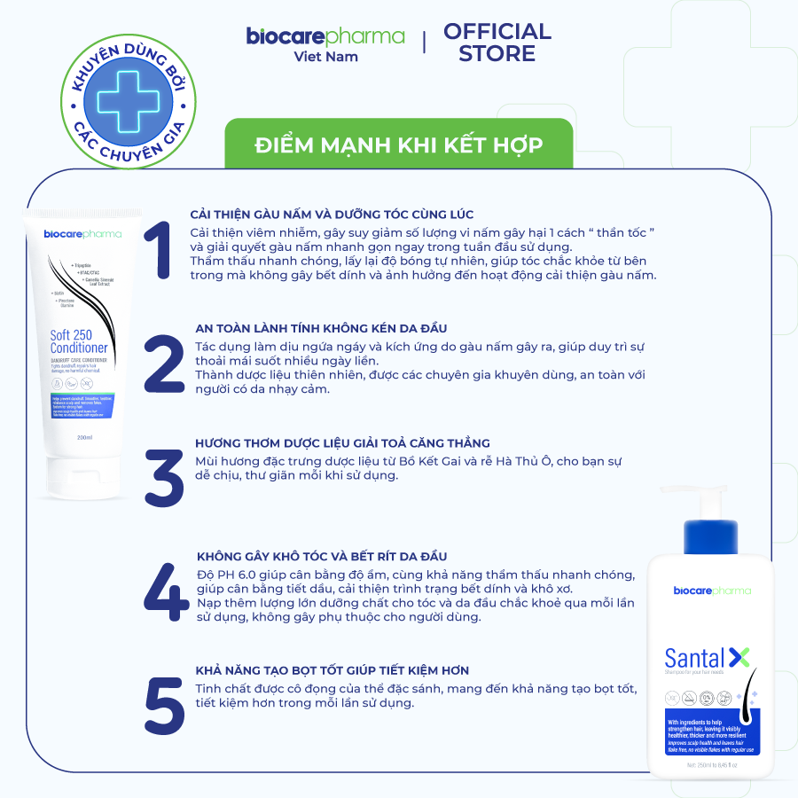 Combo gội xả dành cho tóc gàu nấm hư tổn Santal X và Soft 250 Biocare Pharma