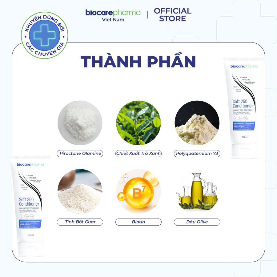 Dầu xả Soft 250 là sản phẩm chuyên biệt dành cho tóc gàu nấm. Thành phần chính của sản phẩm gồm: